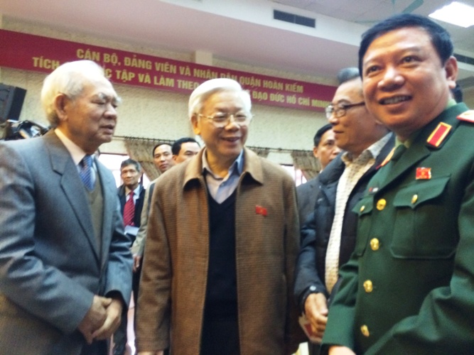 Tổng Bí thư Nguyễn Phú Trọng cũng trao đổi về từng vấn đề cử tri quan tâm như vấn đề biển Đông, tinh giảm biên chế, tinh khả thi của các bộ luật trong thực tiễn cuộc sống, cải cách chế độ tiền lương, tổ chức Hội đồng nhân dân... Tổng Bí thư nhấn mạnh đến việc nhìn nhận, đánh giá một vấn đề thì cần có phương pháp tiếp cận toàn diện, cụ thể, khách quan, biện chứng, không quy kết cũng tránh thổi phồng.../.