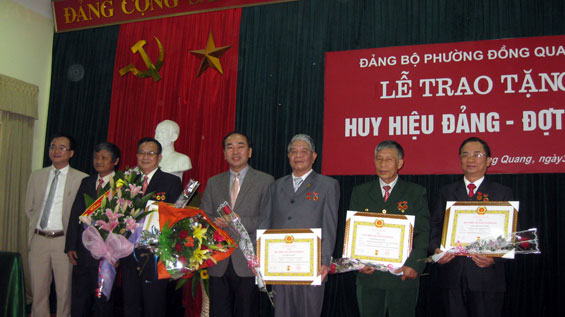 Đến dự có đồng chí Trần Quốc Tỏ, Phó Bí thư Thường trực Tỉnh ủy. Đợt này, phường Đồng Quang có 1 đảng viên được nhận Huy hiệu 70 năm tuổi Đảng, 5 đảng viên được nhận Huy hiệu 55 năm tuổi Đảng, 4 đảng viên được nhận Huy hiệu 50 năm tuổi Đảng, 5 đảng viên được nhận Huy hiệu 40 năm tuổi Đảng và 2 đảng viên được nhận Huy hiệu 30 năm tuổi Đảng.