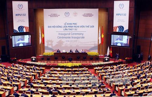 Đúng 20 giờ ngày 28/3, Đại hội đồng Liên minh Nghị viện Thế giới lần thứ 132 (IPU-132) đã khai mạc trọng thể tại Nhà Quốc hội, Thủ đô Hà Nội. Lễ khai mạc bắt đầu với nghi thức chào cờ, Quốc thiều Việt Nam vang lên hùng tráng.
