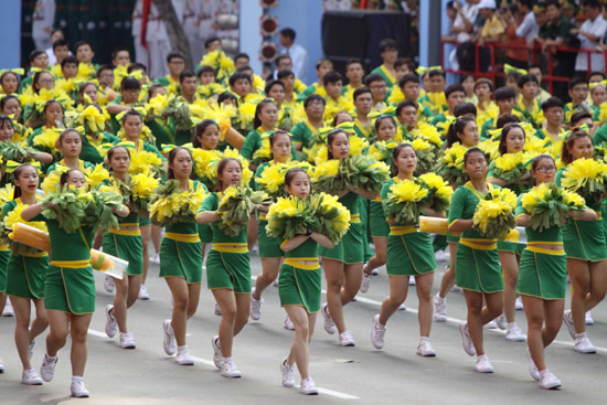 Hôm nay, 30/4, trên cả nước tưng bừng diễn ra các hoạt động kỷ niệm 40 năm giải phóng miền Nam, thống nhất đất nước với tâm điểm là lễ mít tinh, diễu binh và diễu hành tại quảng trường Thống Nhất (trước Hội trường Thống Nhất, Thành phố Hồ Chí Minh). Đây thật sự là ngày hội lớn của dân tộc, quy tụ hơn 6.000 người là diễn viên, cán bộ, chiến sĩ, học sinh sinh viên và quần chúng nhân dân tham gia biểu diễn và diễu binh, diễu hành.