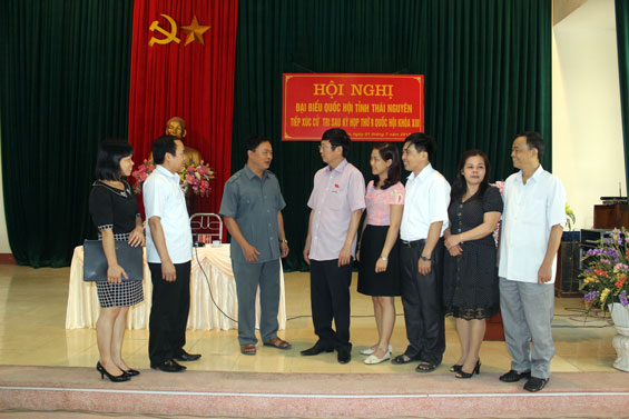Sau khi nghe các đại biểu thông báo về kết quả kỳ họp, cử tri huyện Đại Từ đã phát biểu đánh giá cao tinh thần trách nhiệm của Đoàn đại biểu Quốc hội tỉnh trong kỳ họp lần này; đồng thời, nêu một số kiến nghị như: Đề nghị quan tâm sửa chữa, nâng cấp đường tỉnh 261 đi qua huyện Phổ Yên và Đại Từ; có phương án giải quyết vấn đề quá tải giường bệnh tại các bệnh viện tuyến huyện…