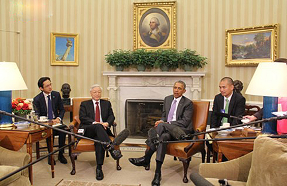 Sáng ngày 7-7 giờ Hoa Kỳ, tức đêm 7-7 theo giờ Việt Nam, tại Phòng Bầu dục, Nhà Trắng ở Thủ đô Washington đã diễn ra cuộc hội đàm giữa Tổng Bí thư Nguyễn Phú Trọng và Tổng thống Barack Obama.