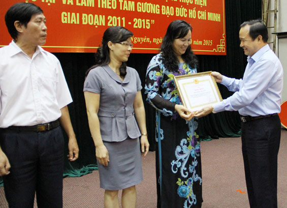 Nhân dịp này, Ban Thường vụ Tỉnh ủy đã tặng Bằng khen cho 64 tập thể, cá nhân có thành tích xuất sắc trong thực hiện Đề án số 09-ĐA/TU. Ban Chỉ đạo, Ban Tổ chức Cuộc thi trao Giấy chứng nhận và phần thưởng tặng 20 tác giả, nhóm tác giả có tác phẩm đoạt giải thưởng trong Cuộc thi sáng tác, quảng bá các tác phẩm văn học nghệ thuật, báo chí về chủ đề “Học tập và làm theo tấm gương đạo đức Hồ Chí Minh” năm 2015.