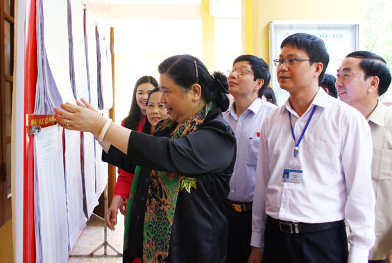 Đó là một trong những ý kiến chỉ đạo được đồng chí Tòng Thị Phóng, Ủy viên Bộ Chính trị, Phó Chủ tịch Quốc hội, Phó Chủ tịch Thường trực Hội đồng Bầu cử Quốc gia nhấn mạnh trong buổi kiểm tra, giám sát công tác bầu cử đại biểu Quốc hội khóa XIV và đại biểu HĐND các cấp, nhiệm kỳ 2016-2021 tại tỉnh ta vào chiều 23-4. Tham gia Đoàn công tác của Ủy ban Thường vụ Quốc hội còn có đồng chí Nguyễn Thanh Hải, Ủy viên Trung ương Đảng, Ủy viên Ủy ban Thường vụ Quốc hội, Chủ nhiệm Ủy ban Văn hóa giáo dục thanh niên thiếu niên và nhi đồng của Quốc hội, cùng các thành viên Hội đồng Bầu cử Quốc gia, lãnh đạo các ủy ban của Quốc hội.