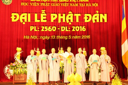 Tối qua (13-5), tại Học viện Phật giáo ở Sóc Sơn, Hà Nội diễn ra chương trình chào mừng Đại lễ Phật đản Phật lịch 2560 - Dương lịch 2016.