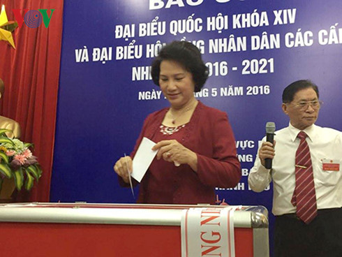 Khu vực bỏ phiếu phường Vĩnh Phúc, quận Ba Đình, Hà Nội, Chủ tịch Quốc hội Nguyễn Thị Kim Ngân vừa bỏ phiếu cùng các cử tri ở đây.