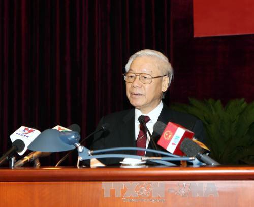 Định hướng một số nội dung, giải pháp cụ thể, Tổng Bí thư chỉ rõ: Hội đồng cần quán triệt sâu sắc đường hướng tổng quát đã được Đảng ta nêu lên và khẳng định tại Đại hội XII: "Thời kỳ mới đòi hỏi phải phát triển đất nước toàn diện, đồng bộ hơn về chính trị, kinh tế, văn hoá, xã hội, quốc phòng, an ninh, đối ngoại, trong đó phát triển kinh tế - xã hội là trung tâm; xây dựng Đảng là then chốt; xây dựng văn hoá, con người làm nền tảng tinh thần; tăng cường quốc phòng, an ninh là trọng yếu, thường xuyên". Đường hướng tổng quát này nhấn mạnh nội dung toàn diện và yêu cầu đồng bộ đổi mới và phát triển. Chú trọng nắm vững và giải quyết tốt các mối quan hệ lớn đã nêu trong Cương lĩnh năm 2011: quan hệ giữa đổi mới, ổn định và phát triển; giữa đổi mới kinh tế và đổi mới chính trị; giữa kinh tế thị trường và định hướng XHCN; giữa phát triển lực lượng sản xuất và xây dựng, hoàn thiện quan hệ sản xuất XHCN; giữa tăng trưởng kinh tế và phát triển văn hoá, thực hiện tiến bộ và công bằng xã hội; giữa xây dựng CNXH và bảo vệ Tổ quốc XHCN; giữa độc lập tự chủ và hội nhập quốc tế; giữa Đảng lãnh đạo, Nhà nước quản lý, nhân dân làm chủ...