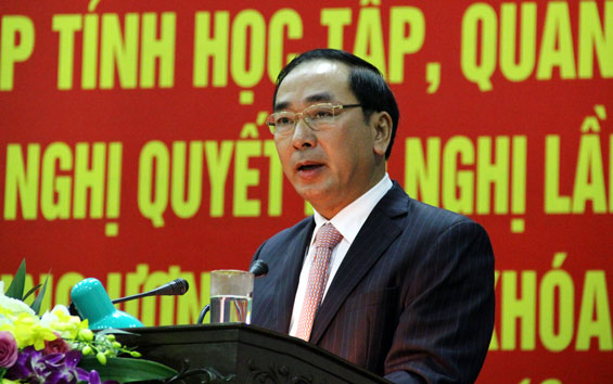 Tiếp đó, gần 300 đại biểu cán bộ chủ chốt cấp tỉnh đã được đồng chí Bùi Xuân Hòa, Phó Bí thư Thường trực Tỉnh ủy, Chủ tịch HĐND tỉnh quán triệt nội dung Nghị quyết số 04-NQ/TW về “Tăng cường xây dựng, chỉnh đốn Đảng; ngăn chặn, đẩy lùi sự suy thoái về tư tưởng chính trị, đạo đức, lối sống, những biểu hiện “tự diễn biến”, “tự chuyển hóa” trong nội bộ”; đồng chí Vũ Hồng Bắc, Phó Bí thư Tỉnh ủy, Chủ tịch UBND tỉnh quán triệt nội dung cơ bản của Nghị quyết số 05-NQ/TW về “Một số chủ trương, chính sách lớn nhằm tiếp tục đổi mới mô hình tăng trưởng, nâng cao chất lượng tăng trưởng, năng suất lao động, sức cạnh tranh của nền kinh tế”; Nghị quyết số 06-NQ/TW về “Thực hiện có hiệu quả tiến trình hội nhập kinh tế quốc tế, giữ vững ổn định chính trị - xã hội trong bối cảnh nước ta tham gia các hiệp định thương mại tự do thế hệ mới”; Kết luận số 09-KL/TW về “Tình hình kinh tế - xã hội, ngân sách Nhà nước năm 2016, kế hoạch phát triển kinh tế - xã hội, dự toán ngân sách Nhà nước năm 2017”.