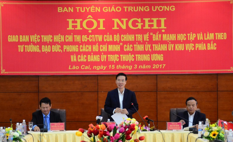 Ngày 15-3, tại Lào Cai, Ban Tuyên giáo Trung ương tổ chức Hội nghị giao ban việc thực hiện Chỉ thị 05-CT/TW của Bộ Chính trị về “Đẩy mạnh học tập và làm theo tư tưởng, đạo đức, phong cách Hồ Chí Minh” các tỉnh ủy, thành ủy khu vực phía Bắc và các Đảng uỷ trực thuộc Trung ương.