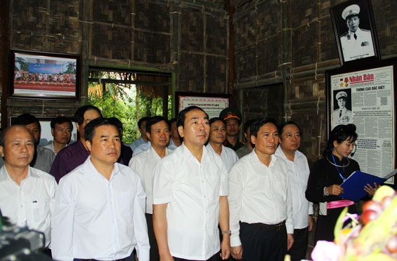 Đoàn đã kính cẩn dâng hương tưởng niệm Chủ tịch Hồ Chí Minh tại Nhà tưởng niệm Người trên đỉnh đèo De, xã Phú Đình và Di tích Văn phòng Bộ Tổng Tư lệnh, nơi ở và làm việc của Đại tướng Võ Nguyên Giáp (1949-1954) ở xóm Bảo Biên, xã Bảo Linh.