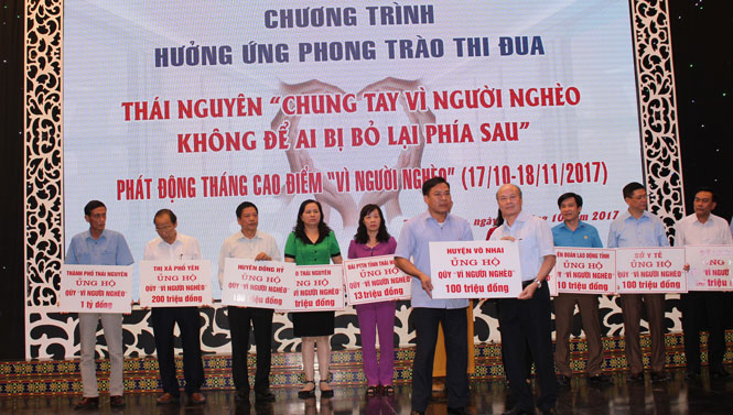 Ngày 16-10, tại Trường quay S1 (Đài Phát thanh - Truyền hình Thái Nguyên), UBND tỉnh, Ủy ban MTTQ tỉnh tổ chức Chương trình hưởng ứng phong trào thi đua “Thái Nguyên chung tay vì người nghèo - Không để ai bị bỏ lại phía sau” và phát động Tháng cao điểm “Vì người nghèo” năm 2017.