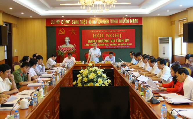 Ngày 16-10, đồng chí Trần Quốc Tỏ, Ủy viên Trung ương Đảng, Bí thư Tỉnh ủy, Trưởng Đoàn đại biểu Quốc hội tỉnh đã chủ trì Hội nghị Ban Thường vụ Tỉnh ủy lần thứ 27, tháng 10-2017. Dự Hội nghị có các đồng chí: Bùi Xuân Hòa, Phó Bí thư Thường trực Tỉnh ủy, Chủ tịch HĐND tỉnh; Vũ Hồng Bắc, Phó Bí thư Tỉnh ủy, Chủ tịch UBND tỉnh, đại diện các Ban Đảng Trung ương, lãnh đạo các sở, ngành, địa phương liên quan.