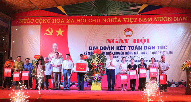 Chiều 17-11, đồng chí Nguyễn Hòa Bình, Bí thư Trung ương Đảng, Chánh án Tòa án Nhân dân Tối cao đã về dự, chung vui “Ngày hội Đại đoàn kết toàn dân tộc” tại xóm Mỹ Hào, xã Thịnh Đức, thành phố Thái Nguyên nhân Kỷ niệm 88 năm Ngày thành lập Mặt trận Dân tộc thống nhất Việt Nam (18/11/1930-18/11/2018).