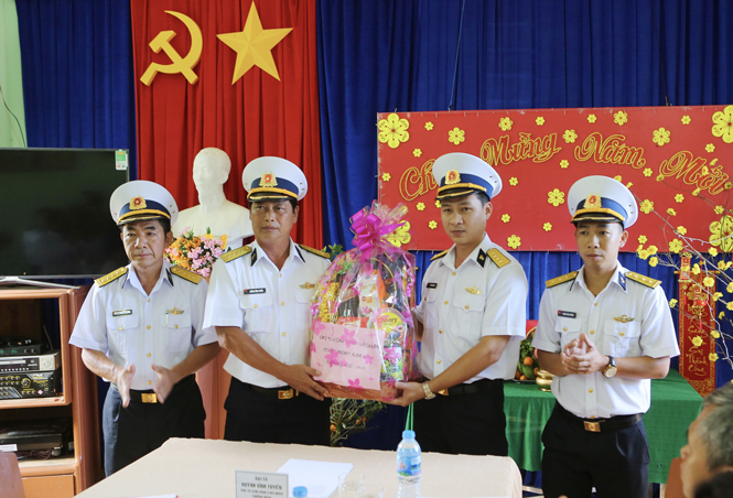 Thay mặt đoàn công tác và Đảng uỷ, BTL Vùng 2 Hải quân, đồng chí Huỳnh Vĩnh Tuyến gửi lời chúc tốt đẹp và trao quà Tết của Vùng cho đại diện các cơ quan, đơn vị. Đồng chí khẳng định trong thời gian qua, mối quan hệ phối hợp giữa các đơn vị Hải quân với cơ quan dân chính Đảng và lực lượng vũ trang đứng chân trên địa bàn luôn gắn bó bền chặt vì nhiệm vụ chung, đồng thời cảm ơn sự tạo điều kiện giúp đỡ của các cơ quan, đơn vị đối với các đơn vị của Vùng 2.