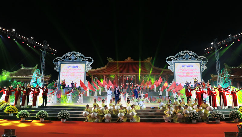 Tại đây, các đại biểu và nhân dân đã cùng xem chương trình nghệ thuật “Đại đội 915 - vang mãi khúc tráng ca” tái hiện lại một thời kỳ gian nan, vất vả nhưng hào hùng của các TNXP Đại đội 915 khi làm nhiệm vụ tại ga Lưu Xá…