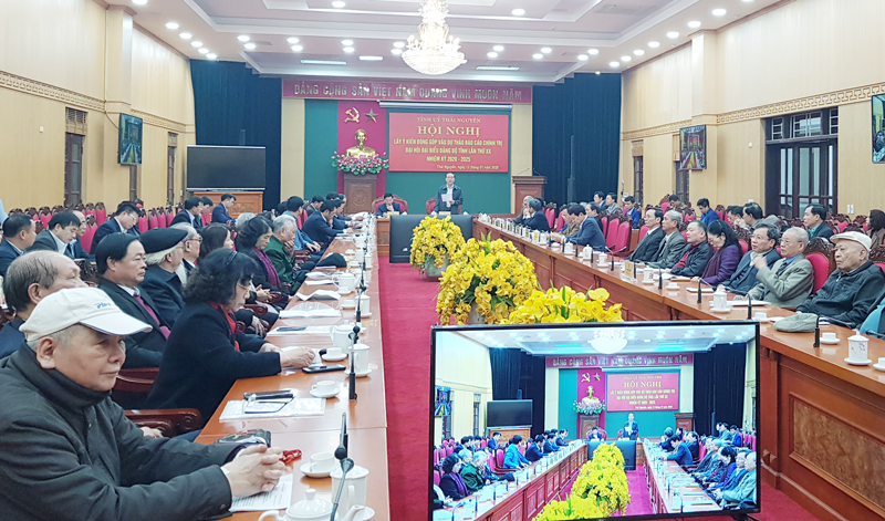 Sáng ngày 13-1, các đồng chí Trần Quốc Tỏ, Ủy viên Trung ương Đảng, Bí thư Tỉnh ủy, Trưởng đoàn Đại biểu Quốc hội tỉnh, Trưởng Tiểu ban Văn kiện; Vũ Hồng Bắc, Phó Bí thư Tỉnh ủy, Chủ tịch UBND tỉnh, Phó Trưởng Tiểu ban Văn kiện đã chủ trì Hội nghị lấy ý kiến đóng góp của các đồng chí nguyên là lãnh đạo tỉnh qua các thời kỳ vào Dự thảo Báo cáo Chính trị Đại hội Đại biểu Đảng bộ tỉnh Thái Nguyên lần thứ XX, nhiệm kỳ 2020-2025. Dự Hội nghị có các đồng chí Ủy viên Ban Thường vụ Tỉnh ủy, lãnh đạo HĐND, UBND tỉnh; các đồng chí nguyên là lãnh đạo tỉnh qua các thời kỳ, đại diện Câu lạc bộ: Hưu trí tỉnh, Hưu trí T.P Thái Nguyên, T.X Phổ Yên và huyện Đồng Hỷ; các sở, ban, ngành, đoàn thể của tỉnh; thành viên Tiểu ban Văn kiện và Tổ Biên tập Văn kiện.