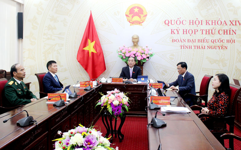 Tại điểm cầu Thái Nguyên, đồng chí Trần Quốc Tỏ, Ủy viên Trung ương Đảng, Bí thư Tỉnh ủy, Trưởng Đoàn ĐBQH cùng các ĐBQH tỉnh tham dự.
