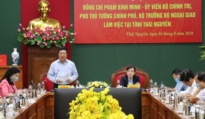 Chiều 4-8, Đoàn công tác của Chính phủ do đồng chí Phạm Bình Minh, Ủy viên Bộ Chính trị, Phó Thủ tướng Chính phủ, Bộ trưởng Bộ Ngoại giao làm Trưởng đoàn đã làm việc tại tỉnh, kiểm tra công tác giải ngân vốn đầu tư công năm 2020, bàn giải pháp tháo gỡ khó khăn trong sản xuất, kinh doanh trên địa bàn.