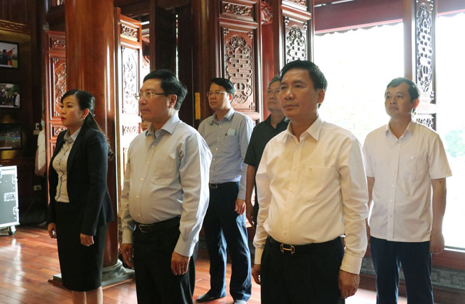 Đoàn công tác đã dâng hương tưởng niệm Chủ tịch Hồ Chí Minh tại Nhà truyền thống trong khuôn viên trụ sở Tỉnh ủy.