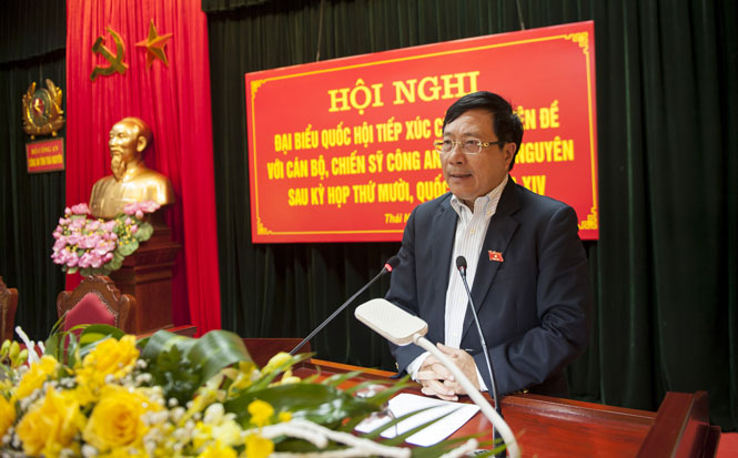 Phó Thủ tướng Chính phủ Phạm Bình Minh phát biểu tại hội nghị tiếp xúc cử tri