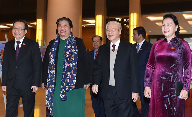 Phát biểu tại buổi gặp mặt, Chủ tịch Quốc hội Nguyễn Thị Kim Ngân cho rằng, kế thừa truyền thống của 13 khóa Quốc hội, với tinh thần đoàn kết, sáng tạo, hành động vì lợi ích của Nhân dân, Quốc hội khóa XIV đã đạt được kết quả khá toàn diện trên các lĩnh vực từ lập pháp, giám sát, quyết định vấn đề quan trọng đến ngoại giao nghị viện, đóng góp vào những thành tựu lớn có ý nghĩa lịch sử của đất nước trong 35 năm đổi mới.