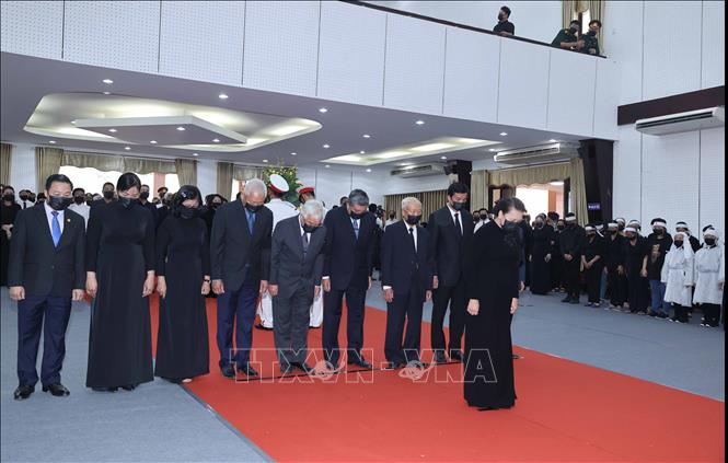 Đồng chí Trương Thị Mai, Ủy viên Bộ Chính trị, Trưởng ban Dân vận Trung ương; đồng chí Nguyễn Xuân Thắng, Ủy viên Bộ Chính trị, Chủ tịch Hội đồng Lý luận Trung ương, Giám đốc Học viện Chính trị quốc gia Hồ Chí Minh; đồng chí Vương Đình Huệ, Ủy viên Bộ Chính trị, Bí thư Thành ủy Hà Nội vào viếng đồng chí Trương Vĩnh Trọng.