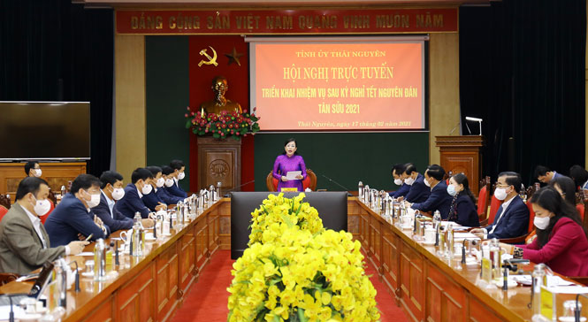 Phát biểu tại Hội nghị, đồng chí Bí thư Tỉnh uỷ nhấn mạnh: Năm 2021 là năm có ý nghĩa đặc biệt quan trọng, đòi hỏi toàn Đảng bộ, chính quyền và nhân dân các dân tộc trong tỉnh phải nêu cao tinh thần đoàn kết, quyết tâm biến thách thức thành cơ hội, nhằm hoàn thành thắng lợi nhiệm vụ đề ra. Đồng chí Bí thư Tỉnh uỷ đề nghị người đứng đầu cấp uỷ, chính quyền, thủ trưởng các cơ quan, đơn vị bám sát tình hình thực tiễn khẩn trương bắt tay ngay vào công việc theo chương trình, kế hoạch công tác. Tập trung cao độ trong công tác phòng, chống dịch COVID-19 trong tình hình mới. Tiếp tục tập trung lãnh đạo, chỉ đạo làm tốt công tác bầu cử đại biểu Quốc hội khoá 15 và đại biểu HĐND các cấp nhiệm kỳ 2021-2026. Thực hiện tốt Chỉ thị số 45 ngày 31/12/2020 của Thủ tướng Chính phủ về tổ chức phong trào “Tết trồng cây”, tăng cường công tác bảo vệ, phát triển rừng ngay từ đầu năm; hưởng ứng Chương trình “trồng mới 1 tỷ cây xanh, góp phần phát triển bền vững đất nước, giai đoạn 2021-2025” trên địa bàn tỉnh. Đồng thời thực hiện tốt Lễ Giao nhận quân năm 2021…
