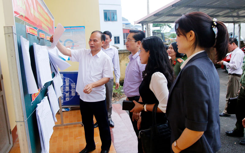 Đoàn công tác kiểm tra việc niêm yết danh sách người ứng cử đại biểu HĐND tại xã Bảo Cường