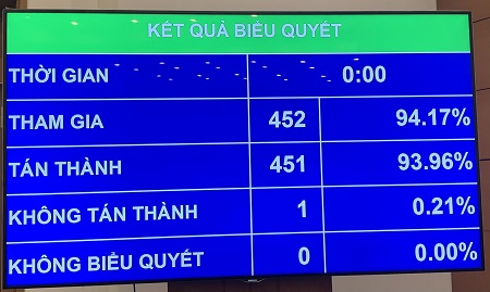451/452 đại biểu Quốc hội biểu quyết thông qua việc miễn nhiệm Phó Chủ tịch nước Đặng Thị Ngọc Thịnh - Ảnh: VGP/Nhật Nam