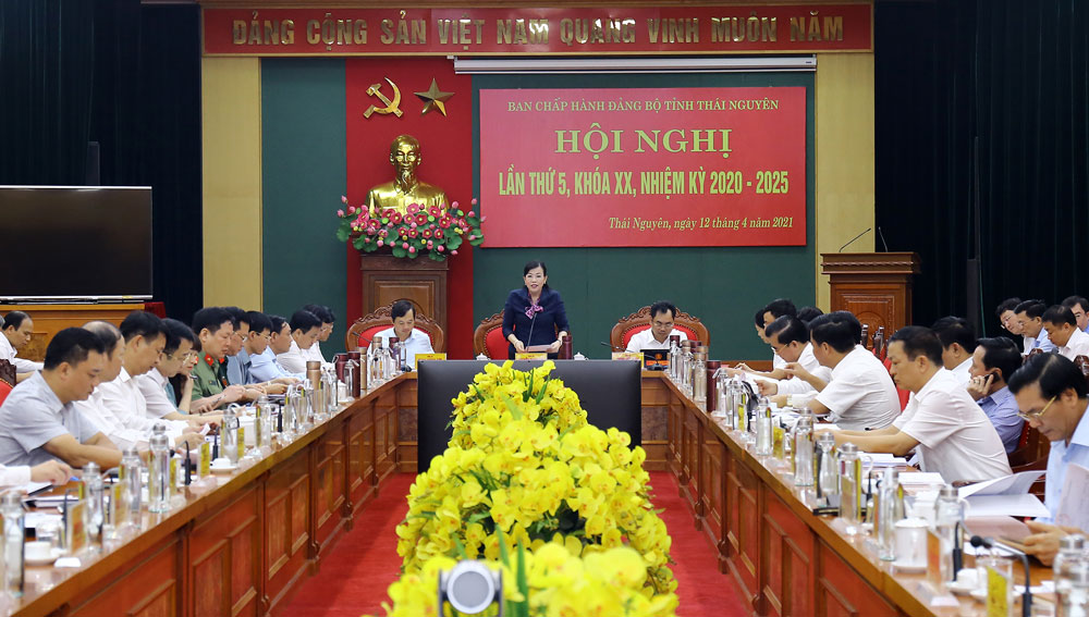 Phát biểu kết luận Hội nghị, đồng chí Bí thư Tỉnh ủy đánh giá cao nỗ lực và quyết tâm lớn của cả hệ thống chính trị trong những tháng đầu năm, qua đó đã kịp thời cụ thể hóa các mục tiêu, chỉ tiêu đã đề ra trong năm và cả nhiệm kỳ 2020-2025. Đối với các ý kiến đóng góp tại Hội nghị, đồng chí giao các cơ quan tham mưu lựa chọn để tiếp thu tối đa, đồng thời hoàn chỉnh văn bản dự thảo và thực hiện các quy trình tiếp theo theo quy định. Về một số nhiệm vụ trọng tâm trong Quý II-2021, đồng chí nhấn mạnh: Cần tiếp tục tập trung chỉ đạo, thực hiện các biện pháp phòng, chống dịch COVID-19; đẩy nhanh tiến độ giải ngân vốn đầu tư công; nâng cao hiệu lực, hiệu quả quản lý nhà nước trên các lĩnh vực, nhất là về quy hoạch, đất đai, giải phóng mặt bằng, thẩm định, cấp phép đầu tư; tiếp tục đẩy mạnh thực hiện chương trình chuyển đổi số theo Nghị quyết số 01 của Tỉnh ủy.