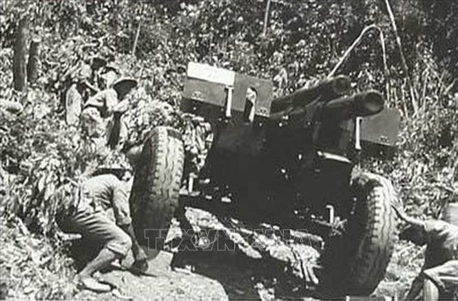 Với kế hoạch “đánh chắc, tiến chắc”, quân ta kéo pháo lên núi cao, đưa vào hầm và chĩa thẳng pháo xuống trận địa kẻ thù để tấn công, nâng cao được uy lực, mức chính xác và mang lại hiệu quả cao nhất. Ảnh: TTXVN