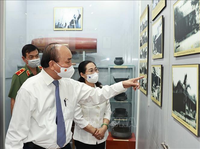 Chủ tịch nước Nguyễn Xuân Phúc tham quan Di tích lịch sử văn hóa Dinh Quận Hóc Môn. Ảnh: Thống Nhất/TTXVN