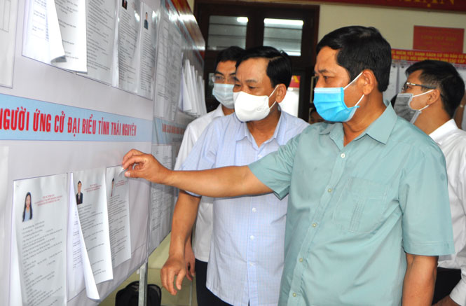 Trước đó, Đoàn đã đi kiểm tra, nắm bắt tình hình công tác chuẩn bị bầu cử tại xóm Soi Vàng (xã Tân Cương) và khu vực bỏ phiếu số 4 gồm tổ dân phố: 9, 10 và Trường Cao đẳng Văn hóa Nghệ thuật Việt Bắc (phường Đồng Quang).
