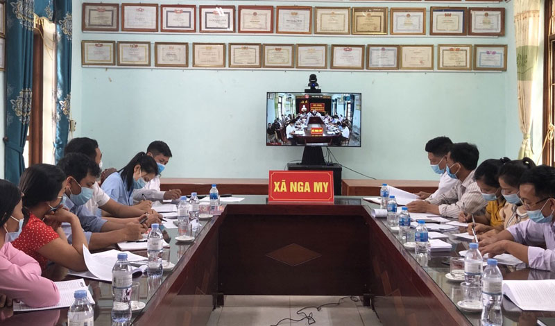 Hội nghị được kết nối trực tuyến đến phòng họp tại các xã.