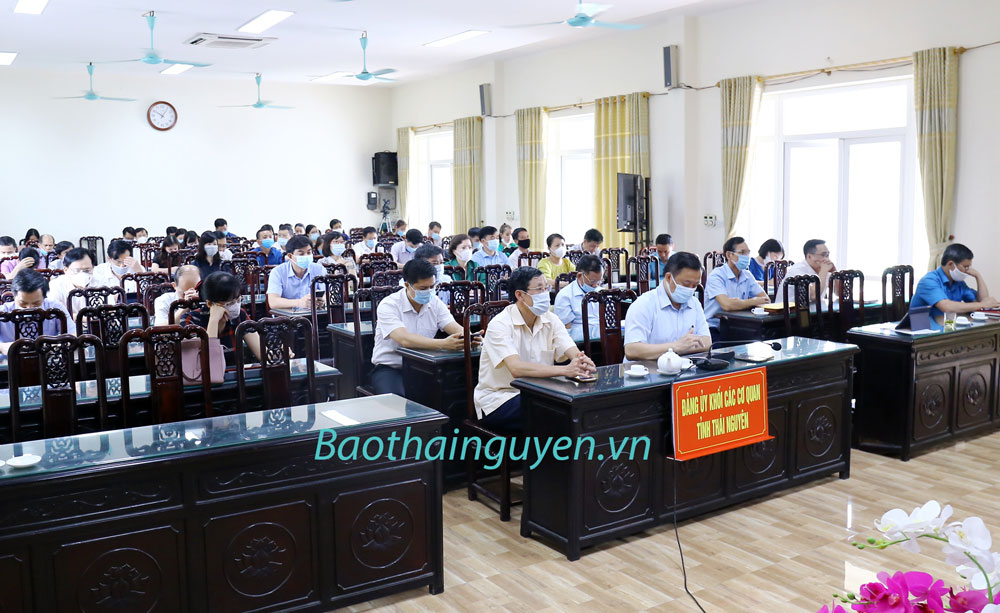 Các đại biểu tham dự Hội nghị tại điểm cầu Đảng ủy Khối các cơ quan tỉnh.