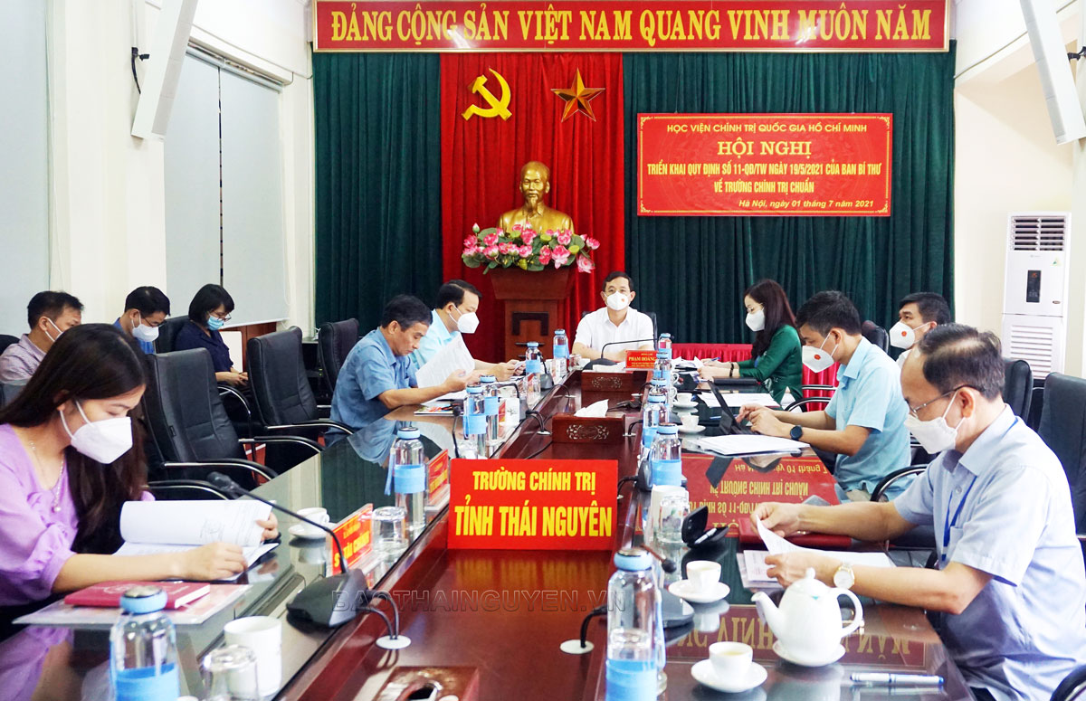 Ngày 1-7, Học viện Chính trị Quốc gia Hồ Chí Minh đã tổ chức Hội nghị trực tuyến toàn quốc nhằm triển khai Quy định số 11-QĐ/TW của Ban Bí thư về trường chính trị chuẩn. Đồng chí Nguyễn Xuân Thắng, Ủy viên Bộ Chính trị, Giám đốc Học viện, Chủ tịch Hội đồng lý luận Trung ương chủ trì Hội nghị. Dự Hội nghị tại điểm cầu Thái Nguyên có đồng chí Phạm Hoàng Sơn, Phó Bí thư Thường trực Tỉnh ủy, Chủ tịch HĐND tỉnh, đồng chí Dương Văn Lượng, Phó Chủ tịch UBND tỉnh; lãnh đạo Trường Chính trị tỉnh và lãnh đạo các sở, ban, ngành liên quan.