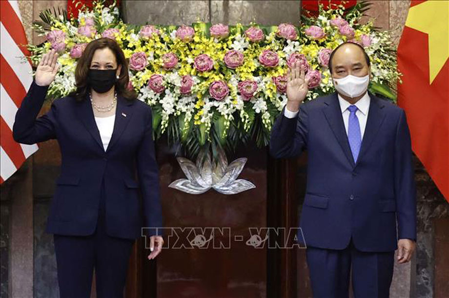 Chủ tịch nước Nguyễn Xuân Phúc tiếp Phó Tổng thống Hoa Kỳ Kamala Harris.