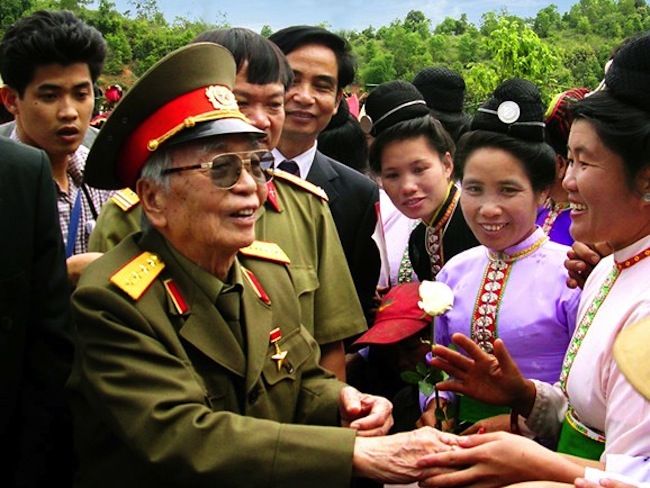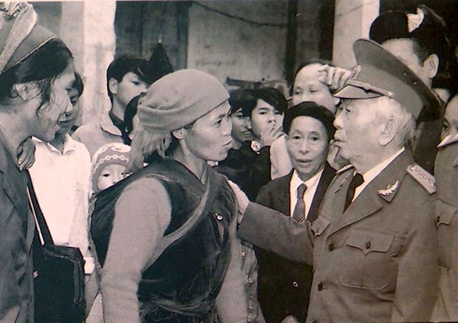 Đại tướng Võ Nguyên Giáp trò chuyện với bà con đồng bào các dân tộc tại Cao Bằng, năm 1994. (Ảnh tư liệu/qdnd.vn)