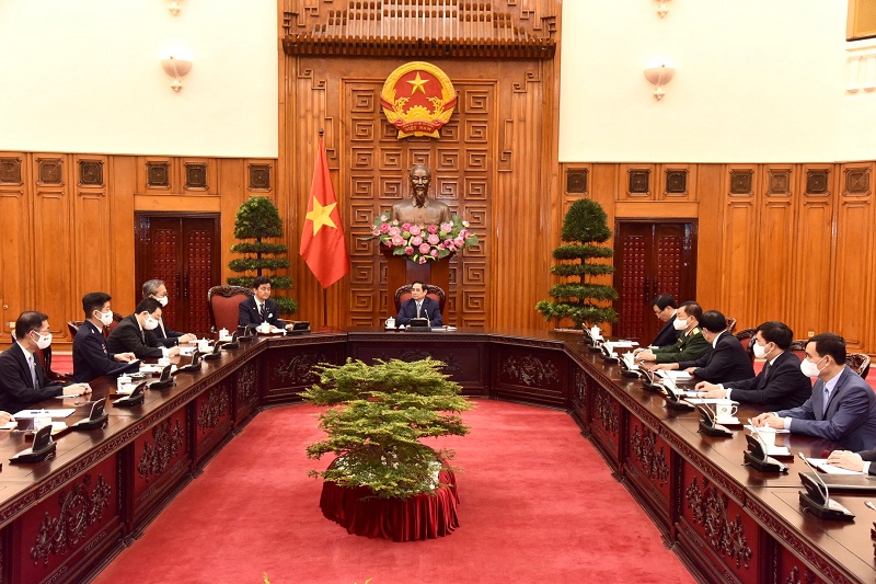 Thủ tướng khẳng định, Đảng, Nhà nước, Chính phủ và nhân dân Việt Nam coi Nhật Bản là một trong những đối tác quan trọng hàng đầu, có độ tin cậy cao trong chính sách đối ngoại của Việt Nam; Việt Nam đang thực hiện chính sách đối ngoại độc lập, tự chủ, đa phương hóa, đa đạng hóa, chủ động, tích cực hội nhập quốc tế toàn diện, sâu rộng, có hiệu quả, là bạn bè tốt, đối tác tin cậy và thành viên có trách nhiệm của cộng đồng quốc tế. Việt Nam hoan nghênh những đóng góp tích cực của Nhật Bản và ủng hộ Nhật Bản ngày càng có vai trò lớn hơn trong duy trì hòa bình, ổn định và phát triển của khu vực cũng như trên thế giới.
