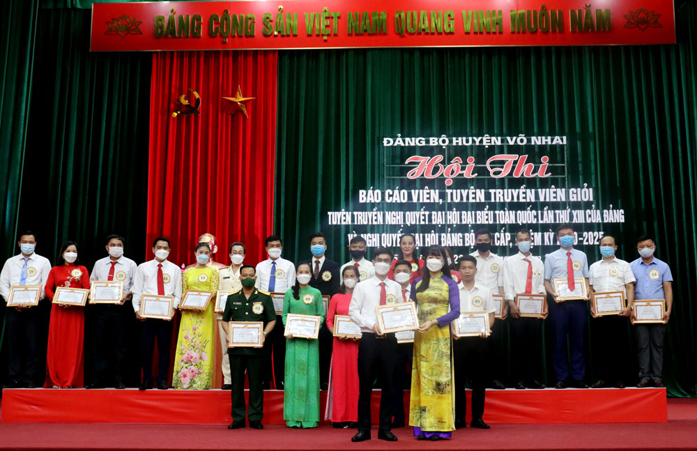 Huyện ủy Võ Nhai vừa tổ chức Hội thi báo cáo viên, tuyên truyền viên giỏi tuyên truyền Nghị quyết Đại hội đại biểu toàn quốc lần thứ XIII của Đảng và nghị quyết đại hội Đảng các cấp, nhiệm kỳ 2020 - 2025.