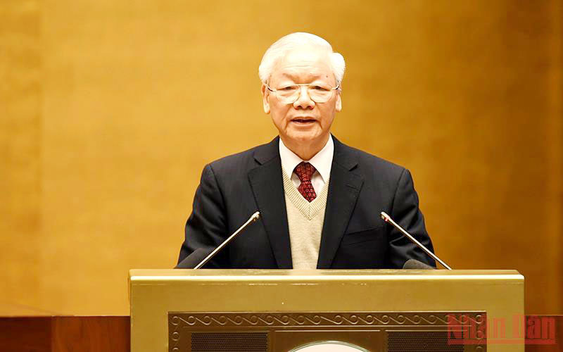 Tổng Bí thư Nguyễn Phú Trọng phát biểu tại Hội nghị. (Ảnh: Nhân dân điện tử)