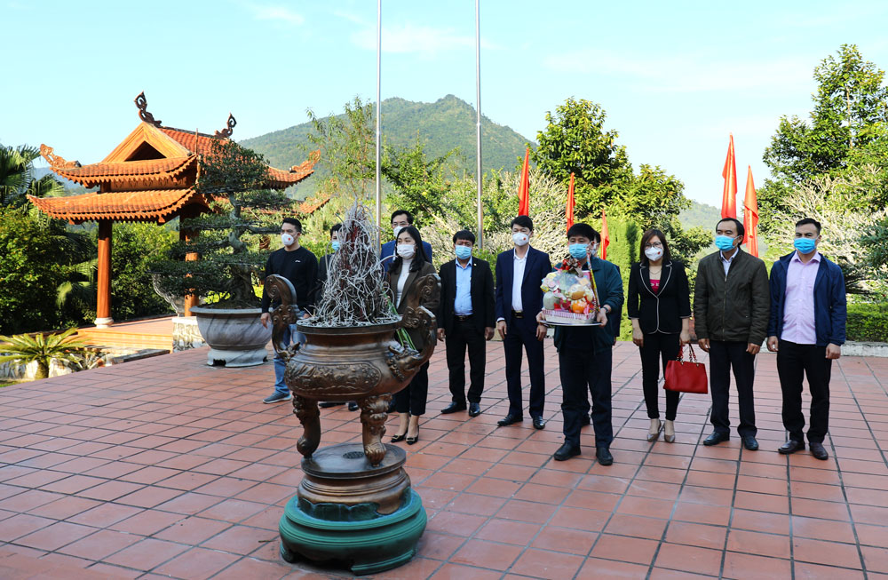 Trước cuộc làm việc với Thường trực Huyện ủy Định Hóa, Đoàn công tác của Báo Thái Nguyên đã đến dâng hương tưởng niệm Chủ tịch Hồ Chí Minh tại Nhà tưởng niệm Người trên đỉnh Đèo De, xã Phú Đình.