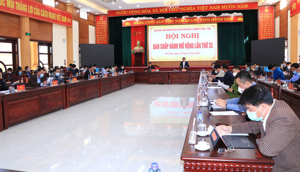Ngày 7-12, Ban Chấp hành Đảng bộ T.X Phổ Yên tổ chức Hội nghị lần thứ 33 nhằm đánh giá kết quả công tác lãnh đạo thực hiện nhiệm vụ chính trị năm 2021, đề ra phương hướng, nhiệm vụ năm 2022. Đến dự có đồng chí Đặng Xuân Trường, Ủy viên Ban Thường vụ Tỉnh ủy, Phó Chủ tịch Thường trực UBND tỉnh.