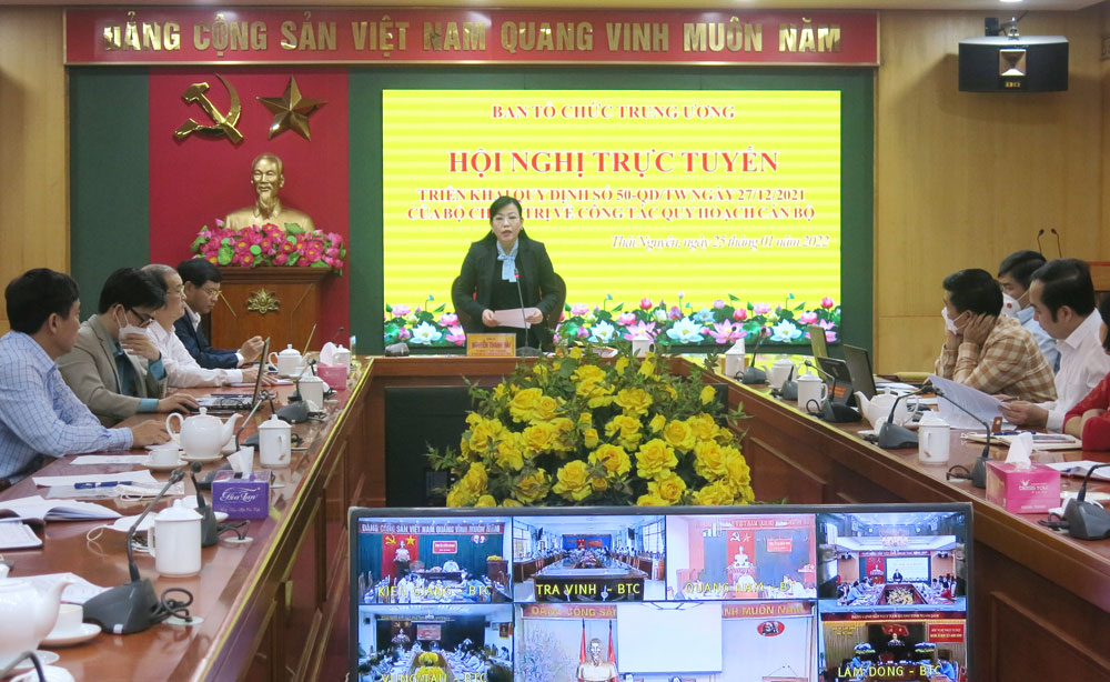Ngày 25-1, đồng chí Trương Thị Mai, Ủy viên Bộ Chính trị, Bí thư Trung ương Đảng, Trưởng Ban Tổ chức Trung ương chủ trì Hội nghị trực tuyến triển khai Quy định số 50-QĐ/TW ngày 27/12/2021 của Bộ Chính trị về về công tác quy hoạch cán bộ.