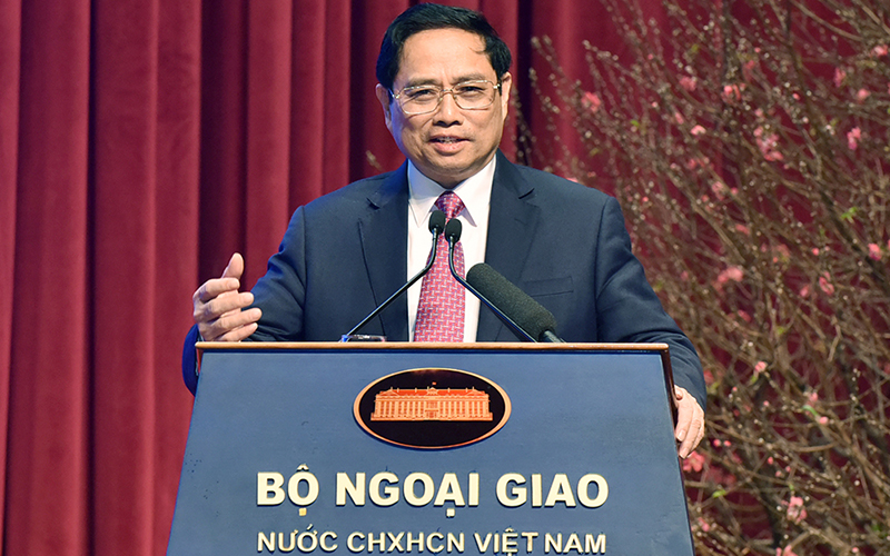 Trong bối cảnh quốc tế, khu vực diễn biến nhanh chóng, phức tạp, khó lường, thuận lợi và thách thức đan xen, Thủ tướng đề nghị ngành Ngoại giao và các cơ quan làm công tác đối ngoại tiếp tục vai trò tiên phong, đi trước mở đường giữ vững môi trường hòa bình, ổn định, góp phần quan trọng vào công cuộc bảo vệ vững chắc độc lập, chủ quyền, thống nhất, toàn vẹn lãnh thổ và phát triển đất nước trong tình hình mới.