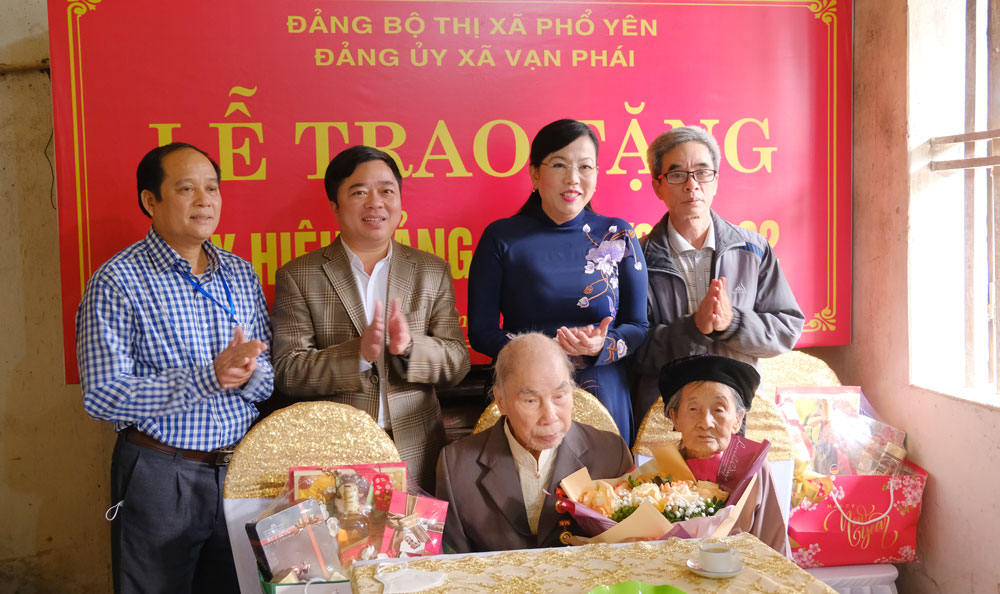 * Chiều cùng ngày, đại diện Thường trực Thị ủy Phổ Yên đã đến thăm và trao tặng Huy hiệu 60 năm tuổi Đảng cho đảng viên Nguyễn Kim Phụng, thuộc Đảng bộ xã Trung Thành.
