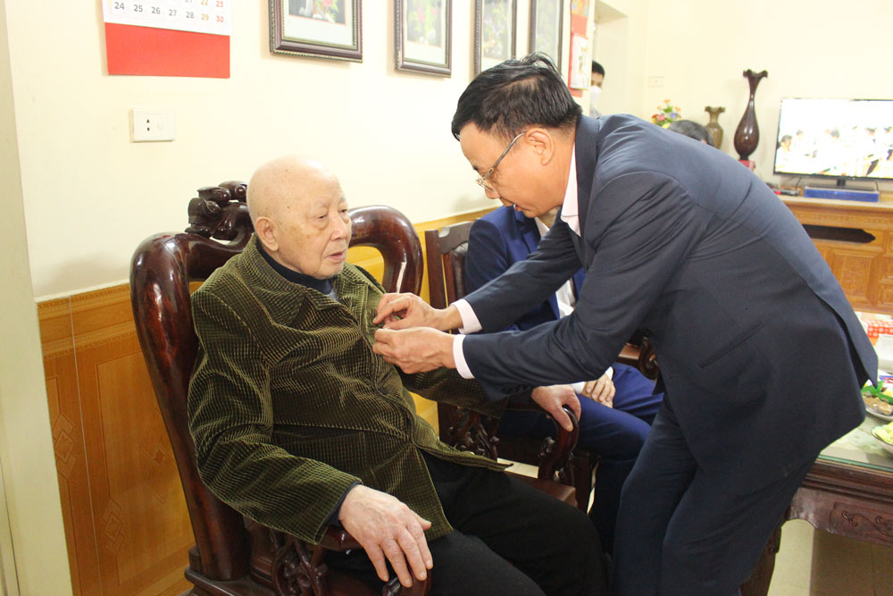 Đồng chí Trịnh Việt Hùng trao tặng Huy hiệu 75 năm tuổi Đảng cho đảng viên Đào Sơn.