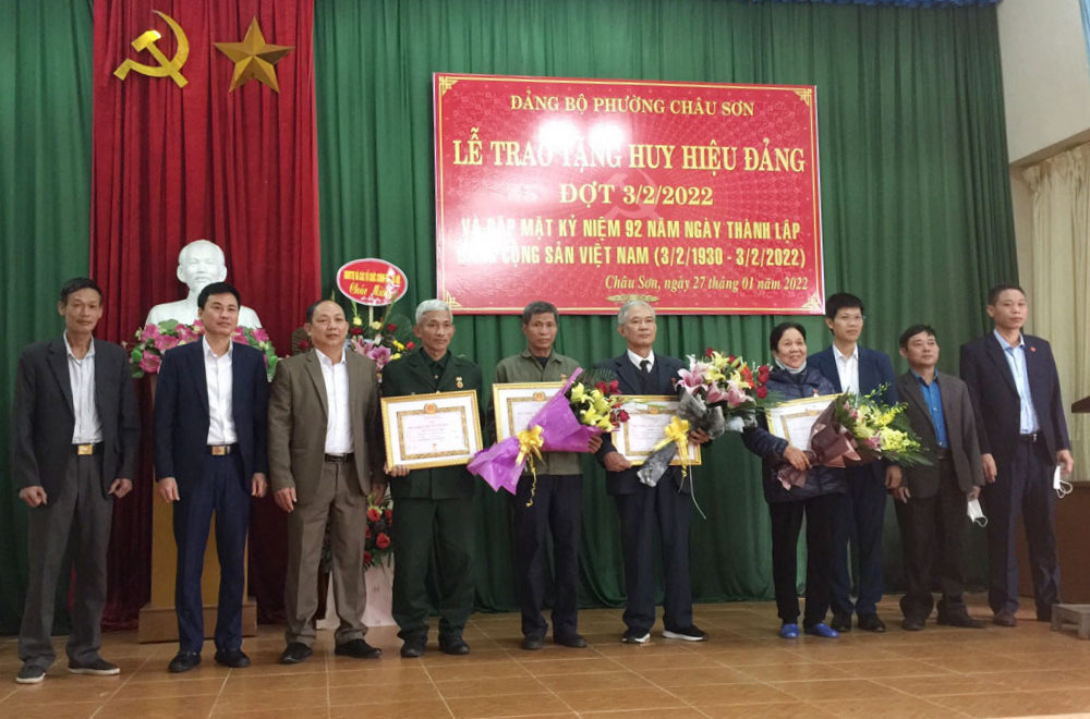 Đảng bộ Phường Châu Sơn trao Huy hiệu Đảng đợt 3-2 cho 4 đảng viên 55 và 50 năm tuổi Đảng.
