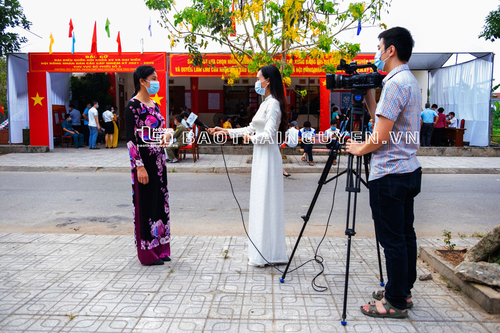 Trong ảnh: Phóng viên Phòng Báo điện tử tác nghiệp trong ngày bầu cử đại biểu Quốc hội khóa XV và đại biểu HĐND các cấp nhiệm kỳ 2021-2026, ngày 23-5-2021.
