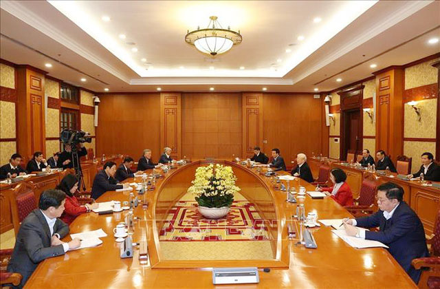Ngày 8-2, tại Trụ sở Trung ương Đảng, Tổng Bí thư Nguyễn Phú Trọng chủ trì cuộc họp của Ban Bí thư Trung ương Đảng đánh giá tình hình thực hiện Chỉ thị số 11-CT/TW ngày 8/12/2021 của Ban Bí thư về việc tổ chức Tết Nhâm Dần năm 2022 và Chỉ thị số 35/CT-TTg ngày 31/12/2021 của Thủ tướng Chính phủ về việc tăng cường các biện pháp bảo đảm đón Tết Nguyên đán Nhâm Dần vui tươi, lành mạnh, an toàn, tiết kiệm.